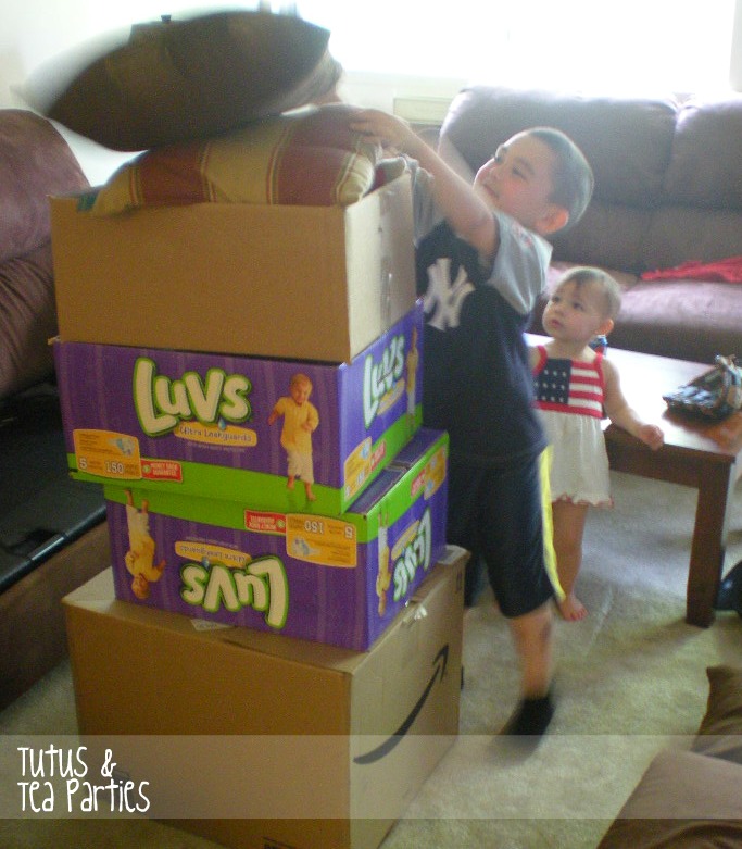 It was so much fun watching them play! If you save your boxes you can even tape them back shut and use them as mega box blocks! You could also make houses. Use your imagination and let your child lead the way. Ask them how else you could play with the boxes.